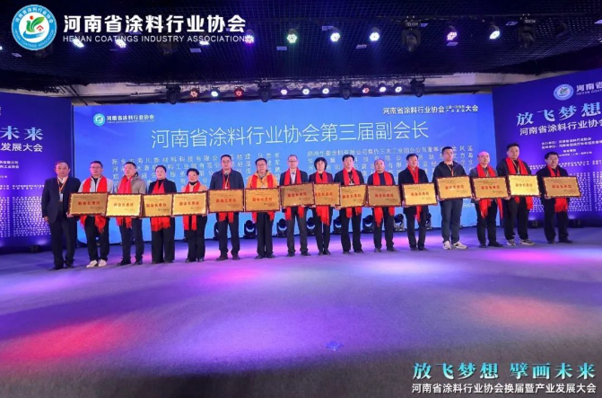 大會(huì)舉行了隆重的授牌儀式,分別為第三屆會(huì)長(zhǎng)單位、常務(wù)(wù)副會(huì)長(zhǎng)單位、副會(huì)長(zhǎng)單位頒發(fā)(fā)牌匾,并為河南臥龍涂料科技有限公司董事會(huì)主席李國(guó)報(bào)頒發(fā)(fā)協(xié)(xié)會(huì)第三屆名譽(yù)會(huì)長(zhǎng)證書(shū),為徐文靜頒發(fā)(fā)協(xié)(xié)會(huì)第三屆秘書(shū)長(zhǎng)聘書(shū)。