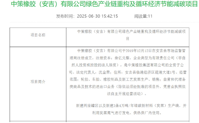【炭黑產業網】7月4日消息,近日,有市場消息稱,中策橡膠(安吉)有限公司擬投資52959萬元新建兩座罐區以及新建3條4萬噸/年硅碳新材料(炭黑)生產線,并利用炭黑尾氣進行發電、供熱供廠內使用。項目將以乙烯焦油及煤焦油作為主要原料,預計12月底開工,建設期為2年。項目投產后,年可實現年銷售收入13.25億元,年均利潤8619萬元。
