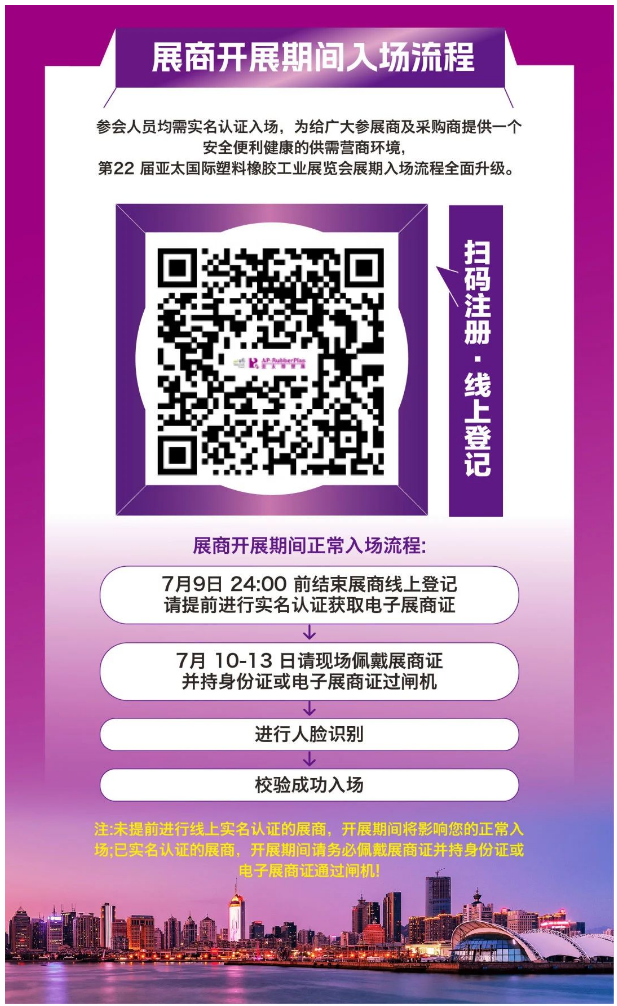 為給廣大參展商及采購商提供一個安全便利健康的供需營商環境,2025第22屆亞太國際塑料橡膠工業展覽會展期內需實名認證入場。