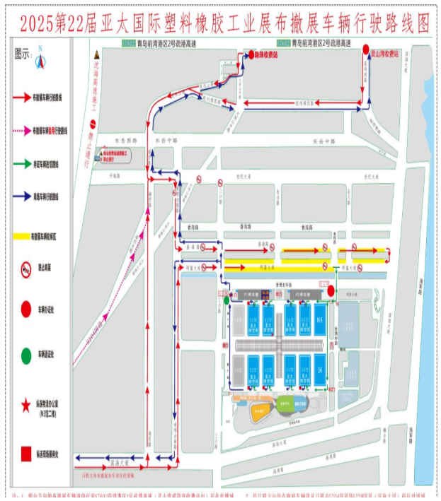 所有車輛辦理好入場證件后均由展館東一門持證入場,卸貨完畢后的車輛由展館北一門退證出場,禁止車輛滯留在展館環道及館內區域。