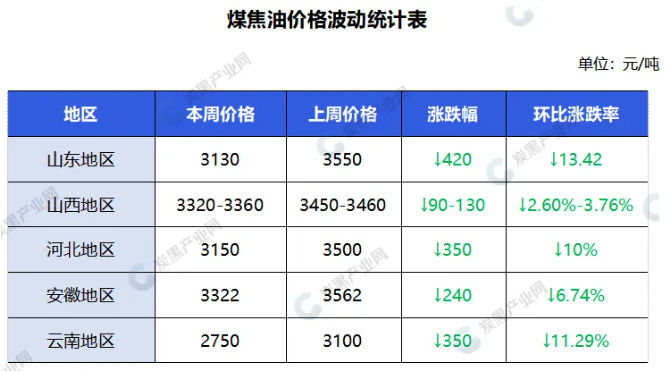 隨著各地拍賣價格出臺,煤焦油市場行情呈現整體下滑態勢,跌幅在90-420元/噸,場內打壓情緒較濃。周內供需矛盾和原料底部支撐減弱,帶動炭黑實單重心下行,企業開啟以價換量模式。