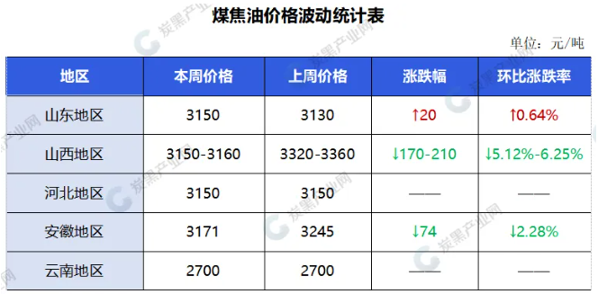 周內(nèi),市場(chǎng)暫無(wú)明顯的利好提振,煤焦油價(jià)格仍以下行為主,不過(guò)區(qū)(qū)域表現(xiàn)(xiàn)略有分化:山東、河北價(jià)格微漲或企穩(wěn)(wěn),周邊區(qū)(qū)域因價(jià)格已接近階段低位,本周降幅相對(duì)有限;與此同時(shí),主流地區(qū)(qū)在經(jīng)(jīng)歷本輪降價(jià)后,價(jià)格多降至相當(dāng)水平,區(qū)(qū)域價(jià)差顯著縮小,其中山西地區(qū)(qū)高位價(jià)格補(bǔ)跌幅度較大,部分低位價(jià)格出現(xiàn)(xiàn)10元/噸的微幅反彈。從本周市場(chǎng)來(lái)看,煤焦油價(jià)格已普遍回落至低位區(qū)(qū)間,短期來(lái)看進(jìn)一步大幅下行的空間較為有限。